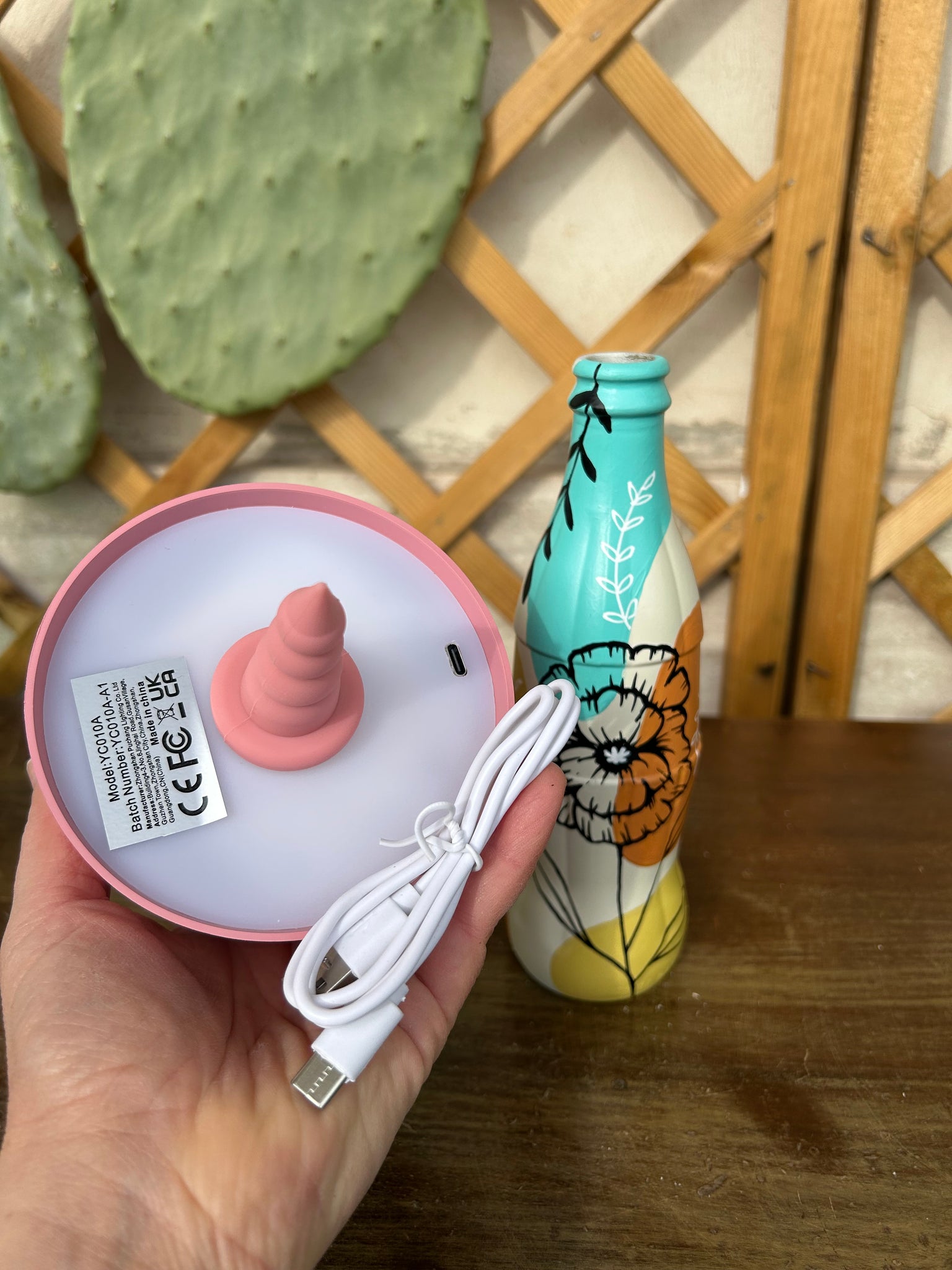 Il paralume non è fissato alla bottiglia, ma basterà poggiarlo con un pò di pressione.