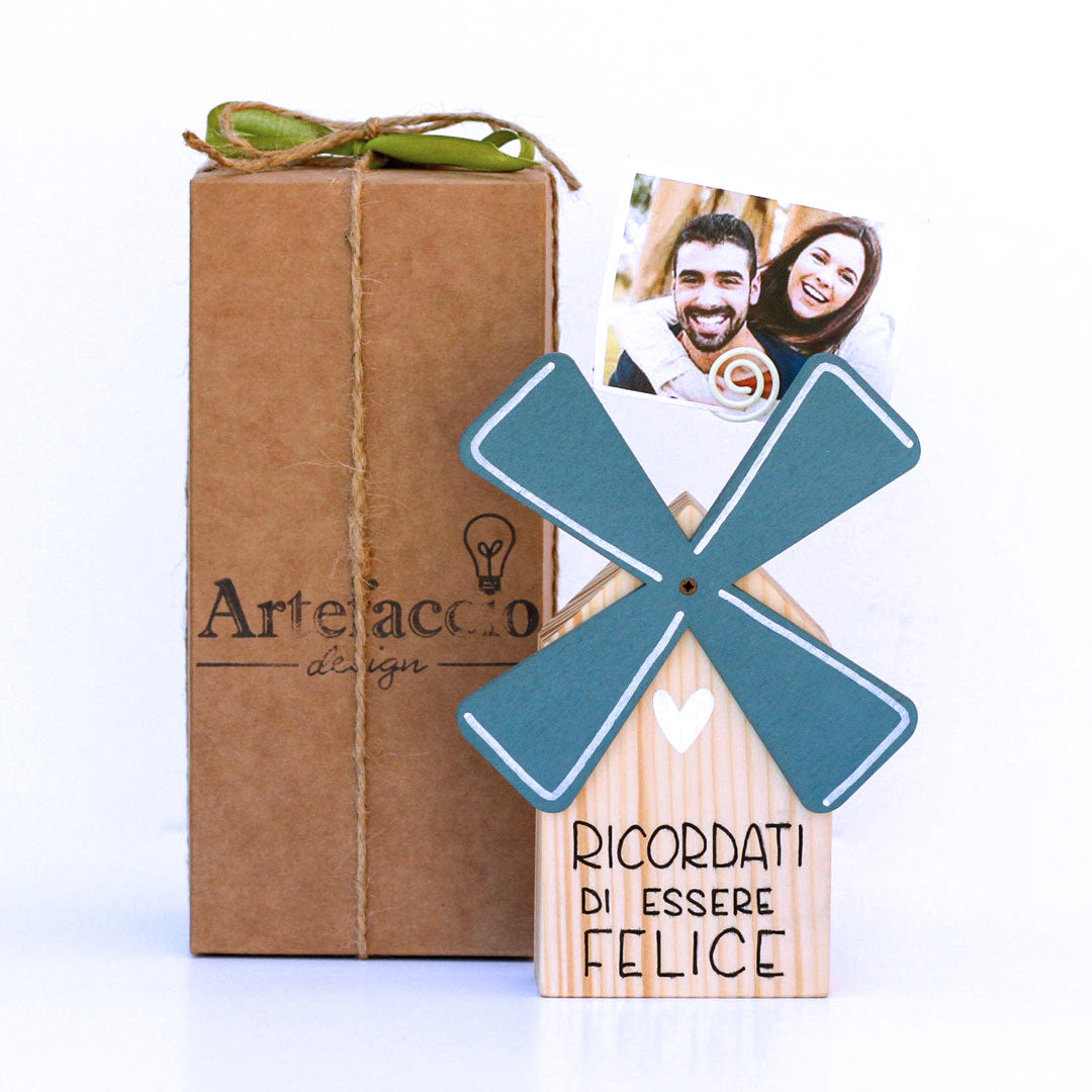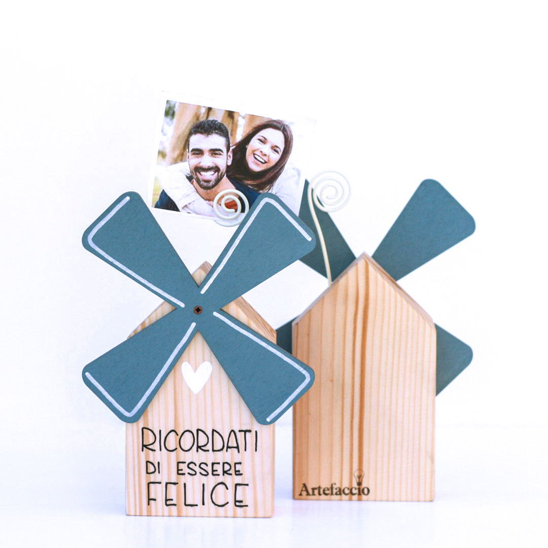I mulini portafoto sono particolari oggetti d'arredocasette in legno di abete riciclato in colorazione naturale.