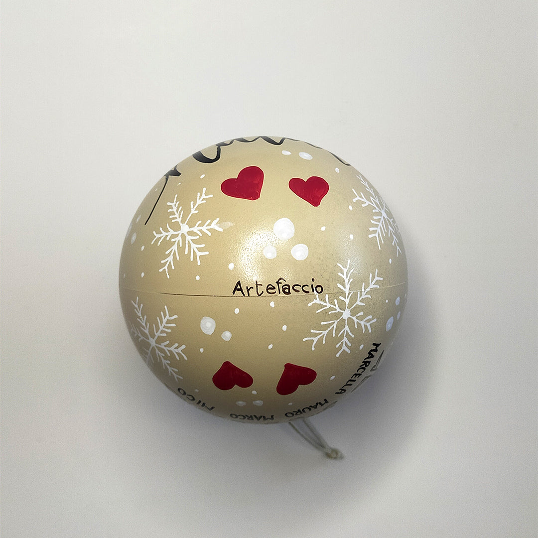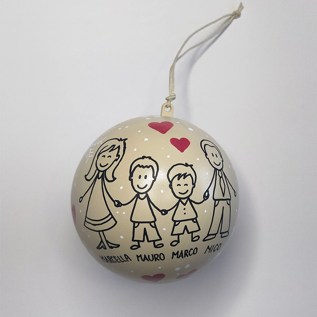 - Secondo Emisfero: Opta per una delle quattro frasi suggerite, oppure personalizza con i nomi che desideri o scegli la rappresentazione stilizzata della tua famiglia (ad esempio, mamma-papà-bambino-bambina).