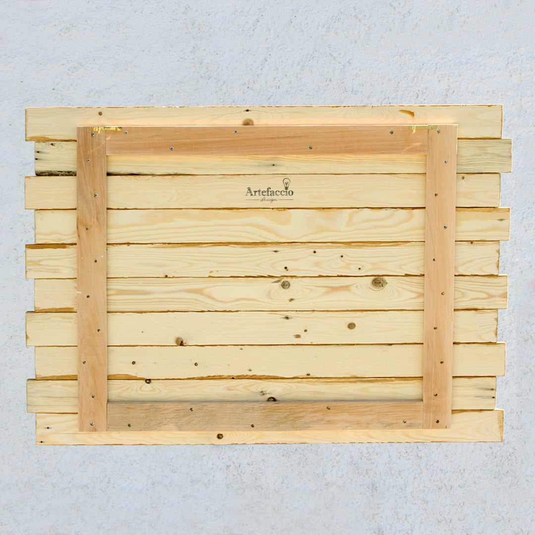 Ogni creazione è unica e mai riproducibile nei singoli dettagli perché realizzata con legno di recupero e perciò caratterizzata da sfumature e tonalità sempre diverse. Eventuali buchi o nodi sono dimostrazione dell'artigianalità e del recupero del legno. Un prodotto unico, originale, esclusivo, fatto a mano in Italia.