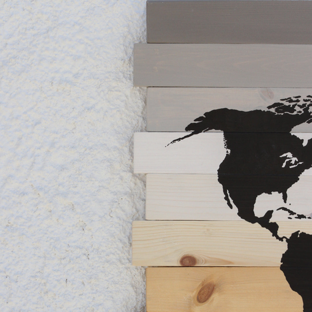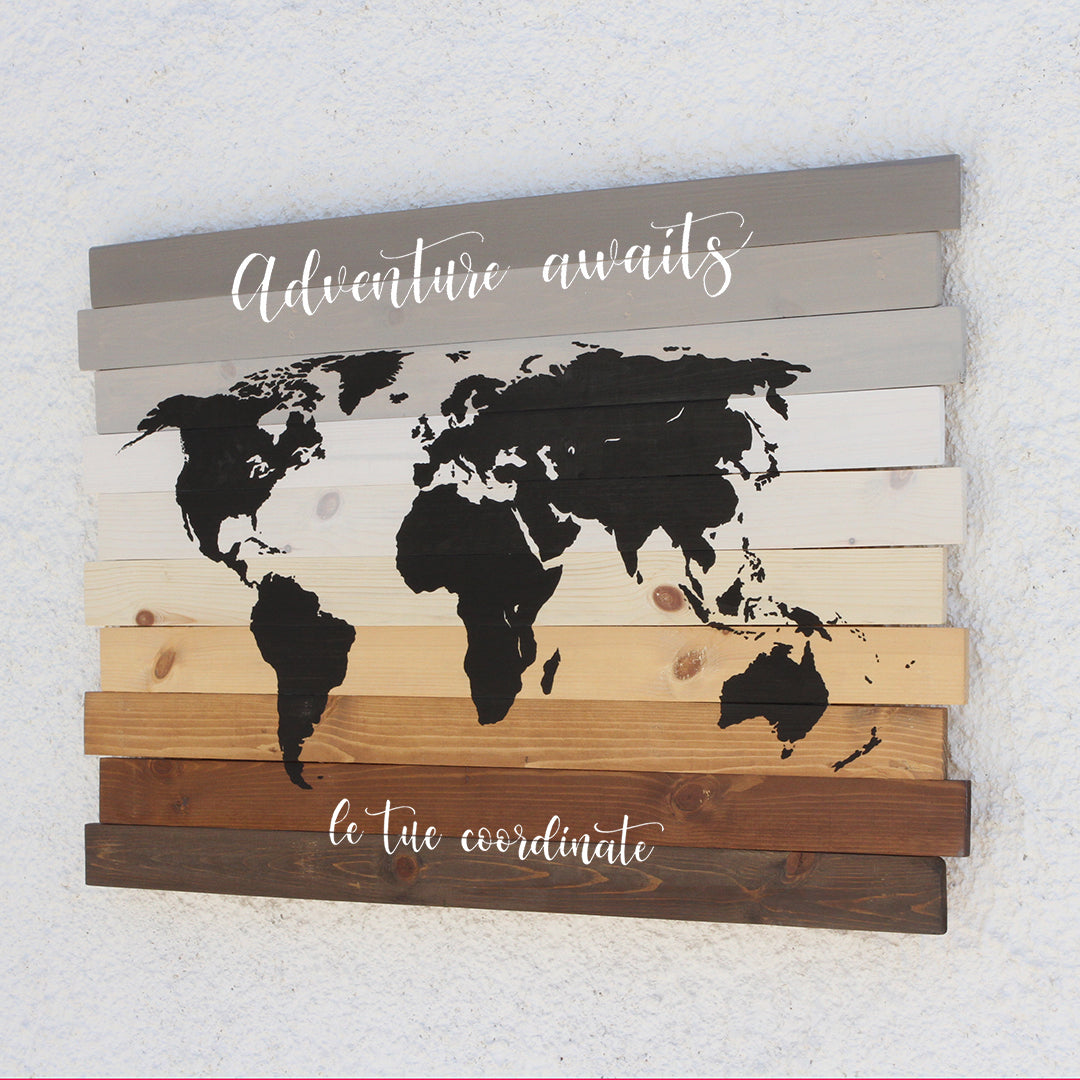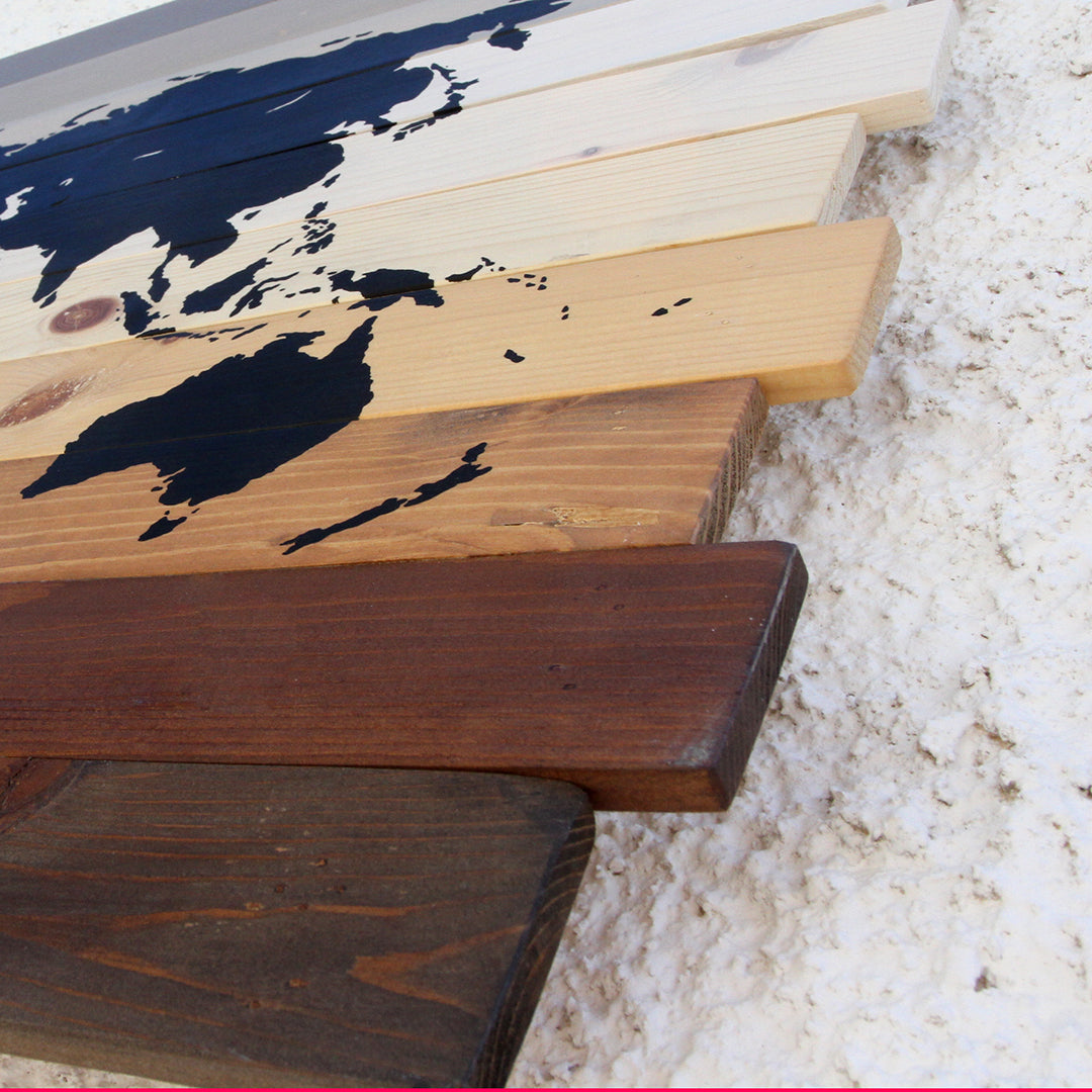 Ogni pezzo è unico perché realizzato con legno rigorosamente recuperato da pallet arrivati a fine vita. Smontiamo i pallet pezzo per pezzo, recuperiamo il legno ancora integro, tagliamo e levighiamo le assi recuperate, le trattiamo con vernici a base d’acqua, naturale ed ecologica e infine le trasformiamo in elementi d’arredo: pezzi unici e completamente artigianali. Le mappe e le personalizzazioni sono fatte rigorosamente a mano.