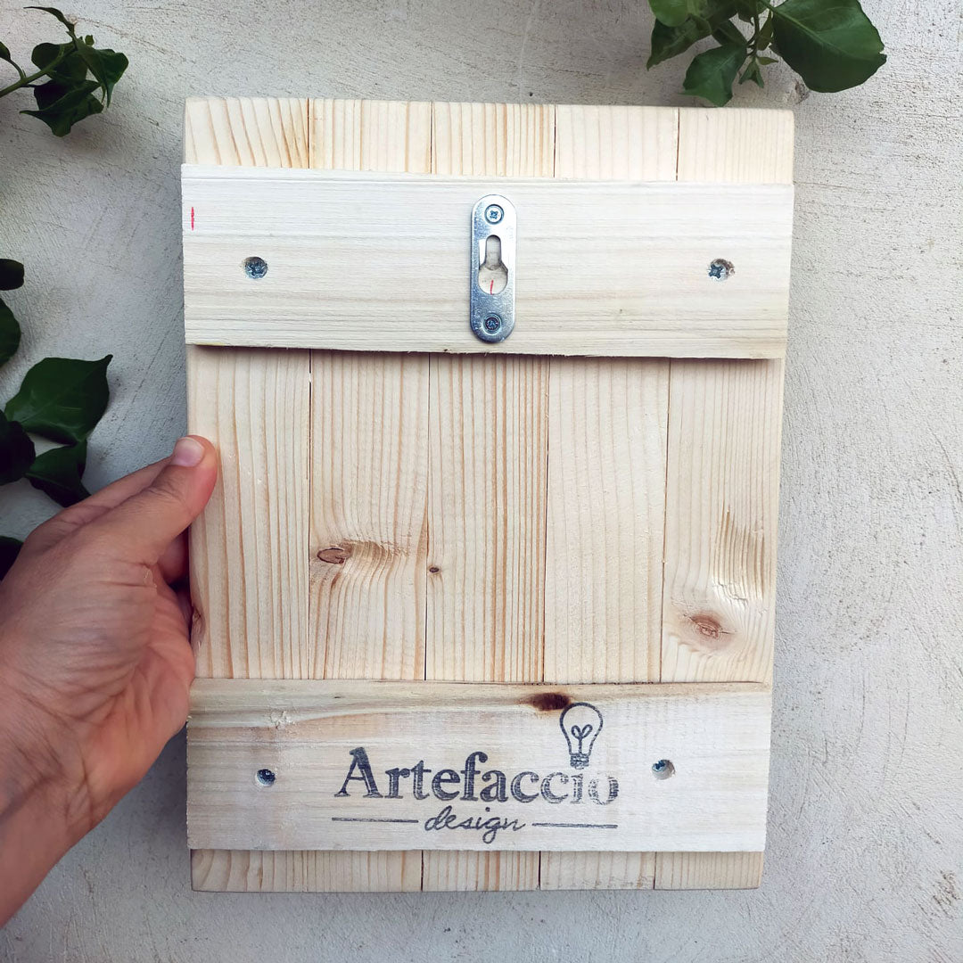 In legno di abete riciclato, misurano 20 x 28 cm e sono decorate e dipinte a mano.